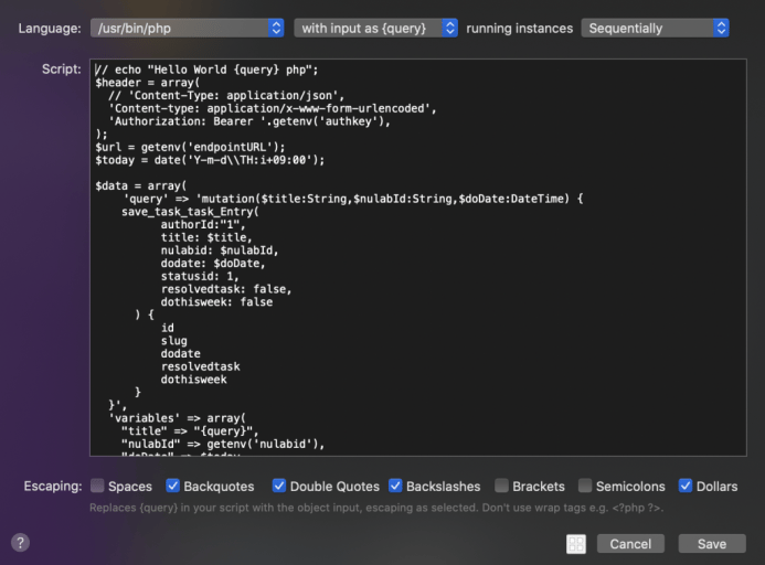 'query' => 'mutation($title:String,$nulabId:String,$doDate:DateTime) {