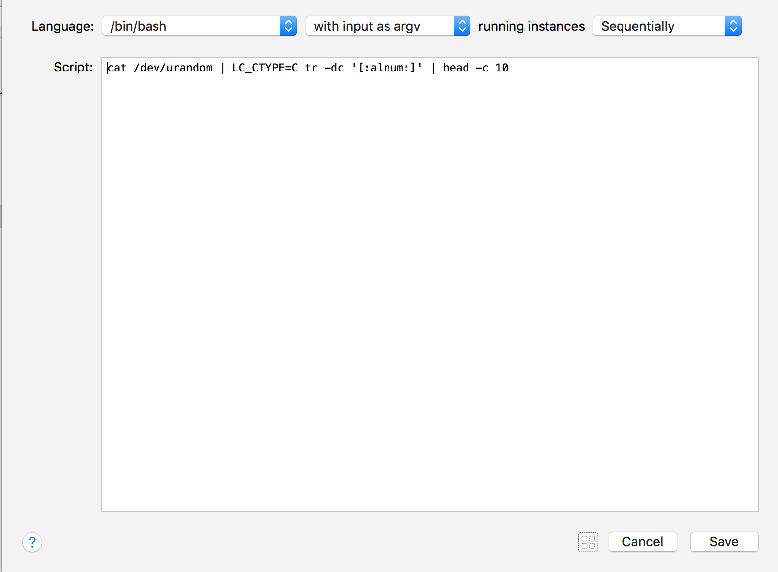 cat /dev/urandom | LC_CTYPE=C tr -dc '[:alnum:]' | head -c 10