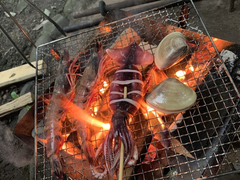 海鮮バーベキュー。エビが最高にうまかった。はまぐりもイカも美味しかった。