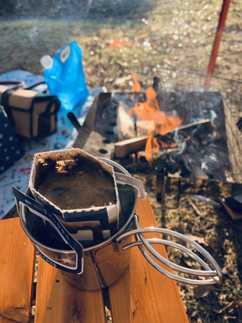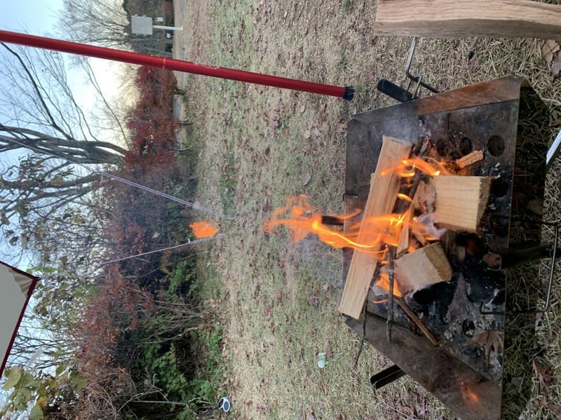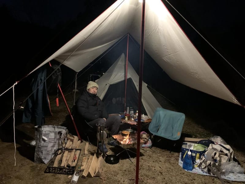 日も落ち始めてくると一気に寒くなるので早速焚き火開始。