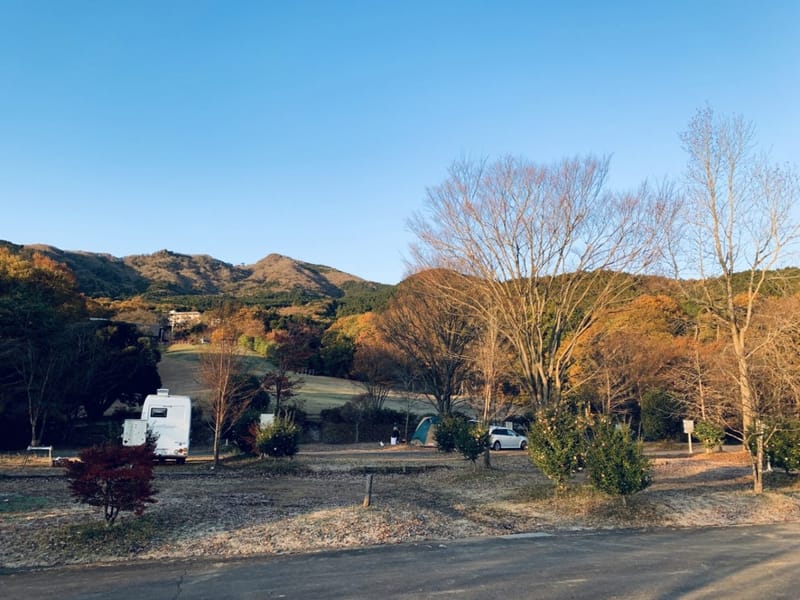 キャンプ場の高台(管理棟やフリーサイトがあるところ)からオートキャンプエリアを見渡す。