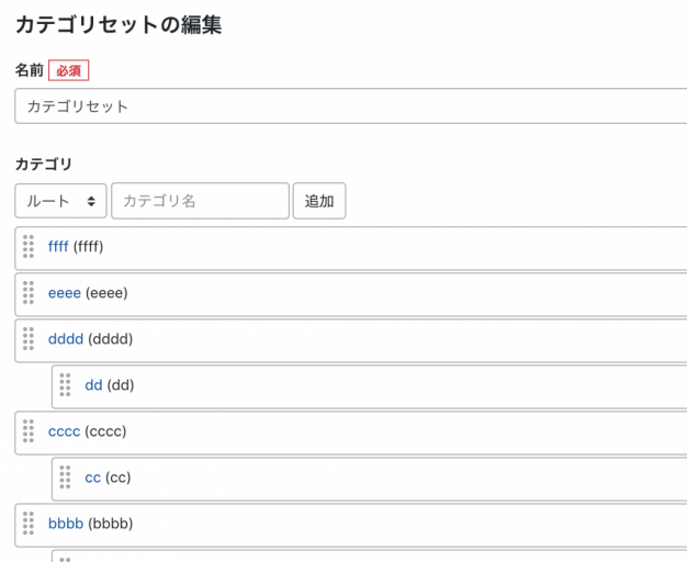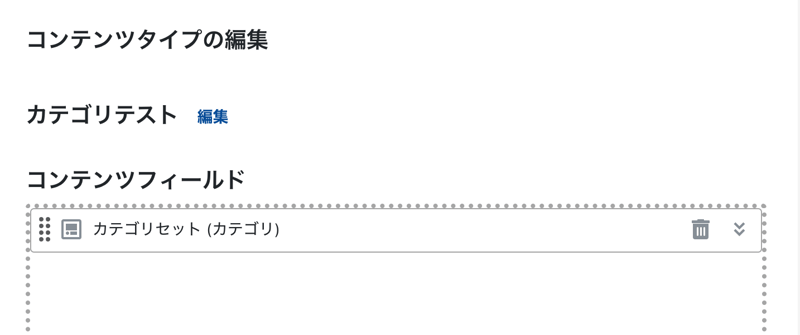アルファベットの方の「カテゴリセット」をコンテンツタイプ「カテゴリテスト」を作成してフィールドを設定する