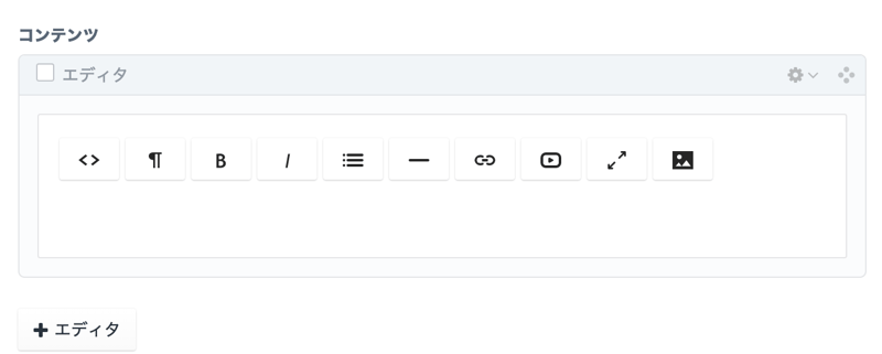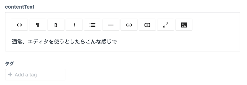 通常、エディタを使うとしたらこんな感じでリッチエディタのフィールドを用意する感じになると思う。