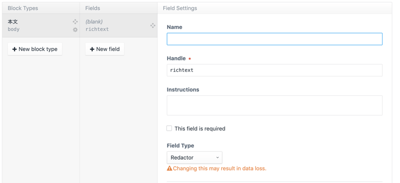 Craft CMS で Matrix フィールドはブロック内のフィールド名は空にできる