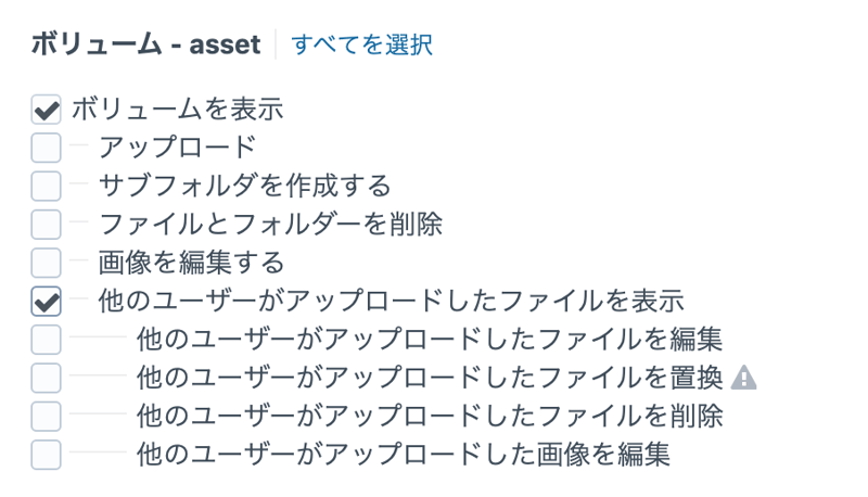 それに伴い、アセット関係の権限周りについて他の人がアップしたものについての設定項目が増えた。