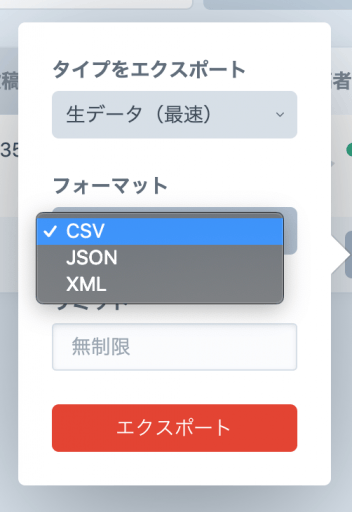エクスポートできるフォーマット