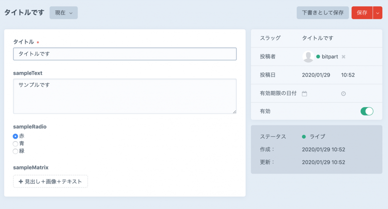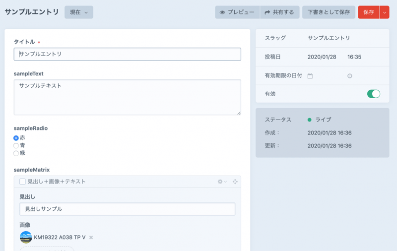 "slug": "サンプルエントリ",