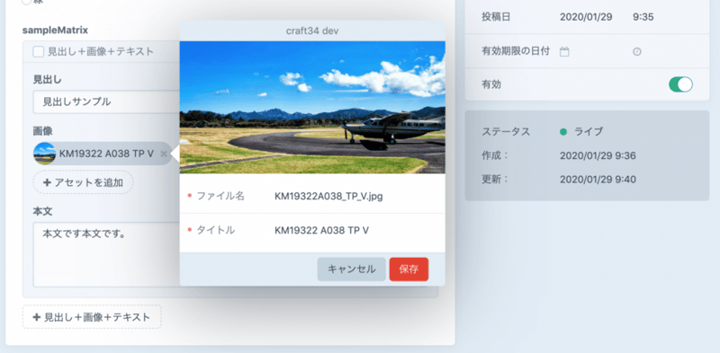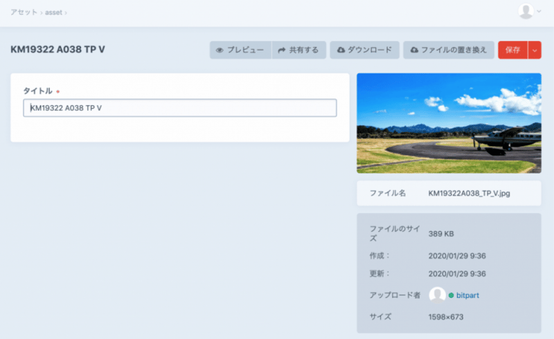 アセットもエントリなどと同様に管理画面に個別の編集画面が出るようになった。