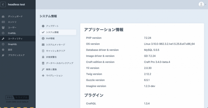 GraphQL 周りとか触っていて Craft CMS 3.4 beta をインストールしてみた。