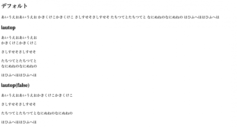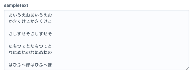 <div><p>あいうえおあいうえお<br>かきくけこかきくけこ</p><p>さしすせそさしすせそ</p><p>たちつてとたちつてと<br>なにぬねのなにぬねの</p><p>はひふへほはひふへほ</p></div>