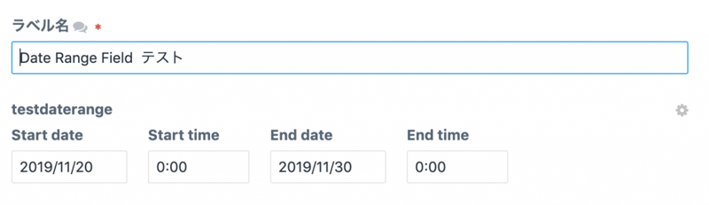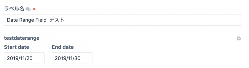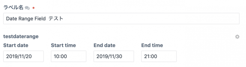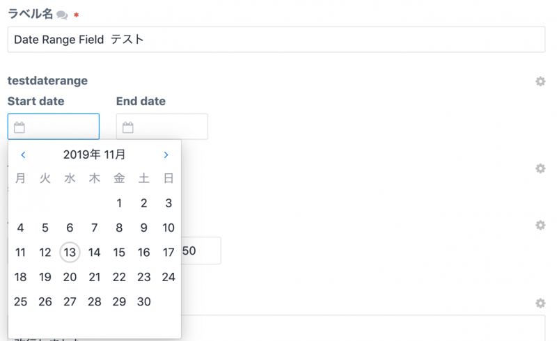 セクションにフィールドを設定するとこんな感じで、開始日、終了日を選択できる。