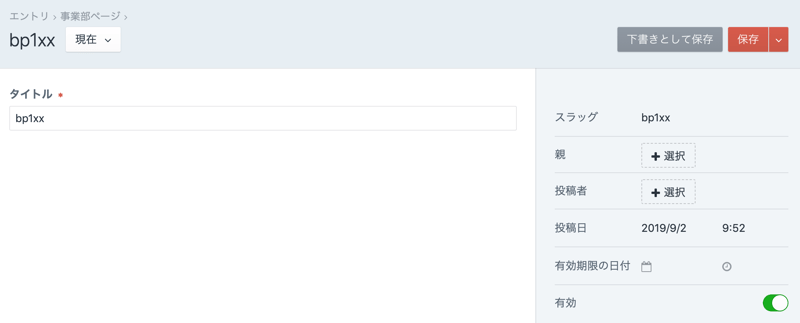 この状態で編集者が編集するとこんな感じで下書きとして保存するしかボタンがない。