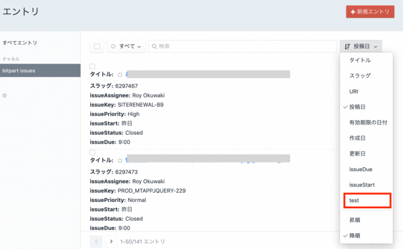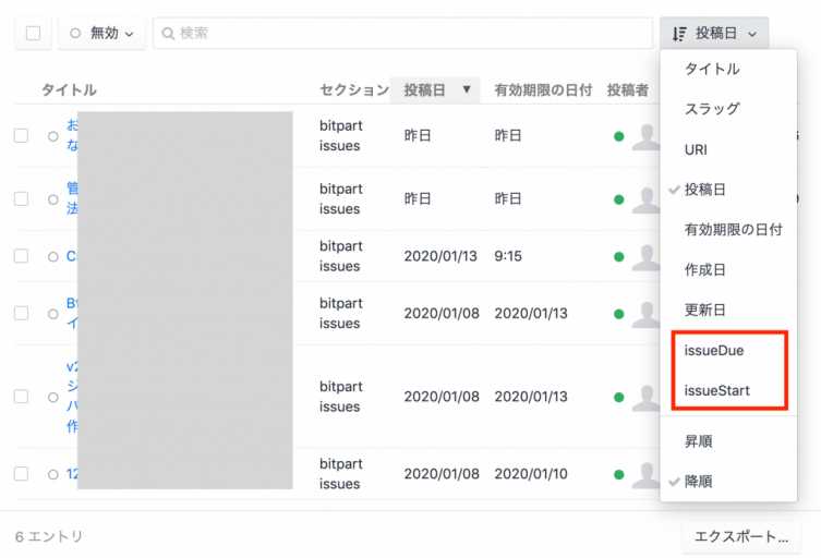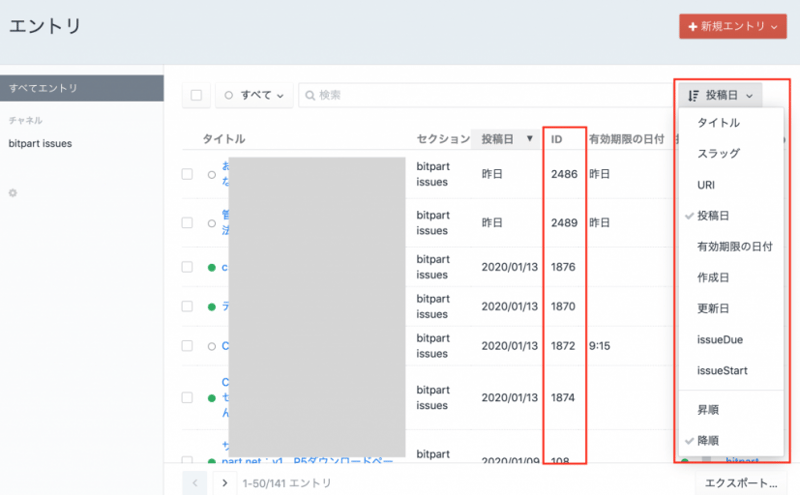 Craft CMS の管理画面の一覧でのソートは日付系か数字系のフィールド #craftcms