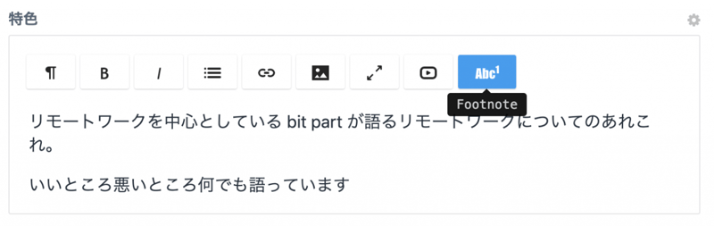 リッチエディタに脚注機能をつけられる Footnotes プラグインを見つけた。