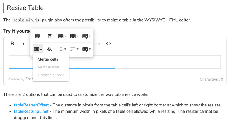 Resize Table - Froala