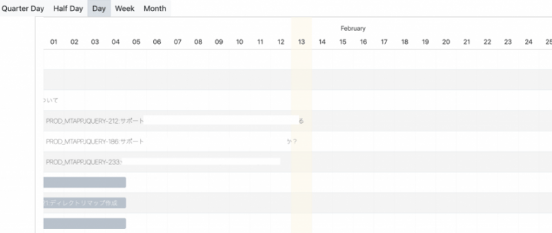 そういう意味ではガントチャートでのタスクの並び順とかも調整したほうが良さそう。