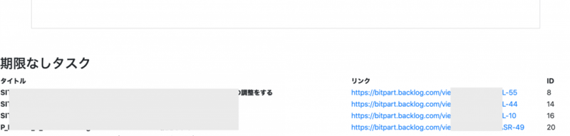 一応、期日がセットされていないものもリストしてあったほうがいいかもな?とおもったので、ガントチャートの下には期日がないものリストを作っておいた。