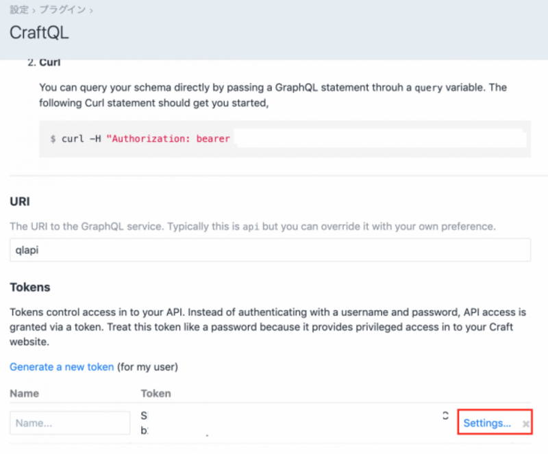 Token を生成して、その Settings から設定する。