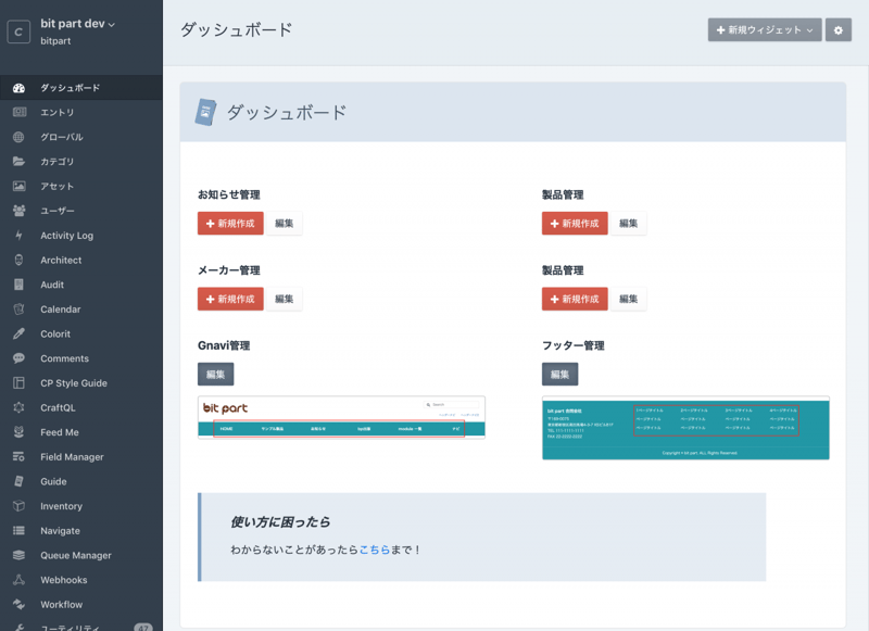 Craft CMS はダッシュボード(cp)にウィジェットが使えるのでそれを使うことである程度調整ができる。