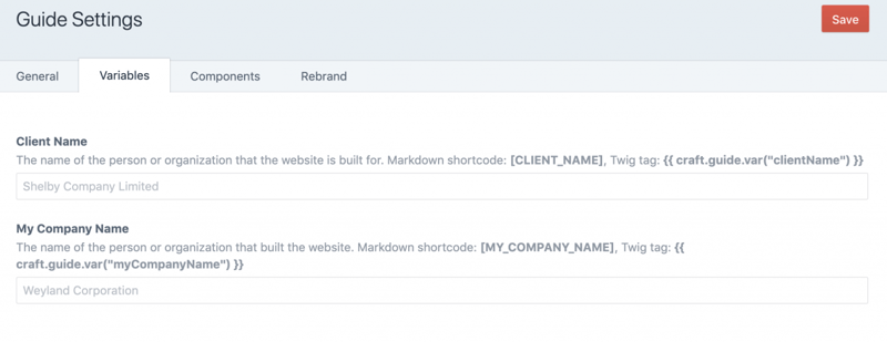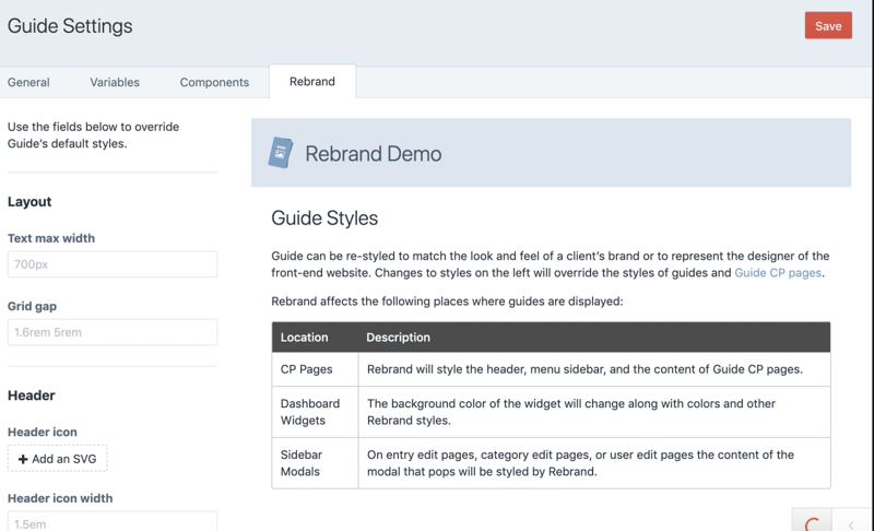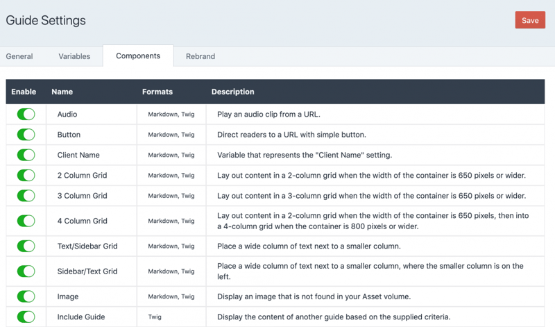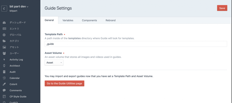 ガイドをカスタマイズするときに利用できるコンポーネントを設定する。