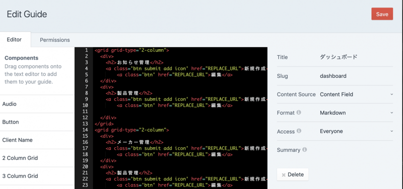 このような感じでガイドを新規に作成することが可能。