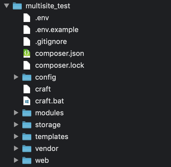 multisite_test/ <= Craft CMS をインストールしたところ(プロジェクトルートディレクトリ)