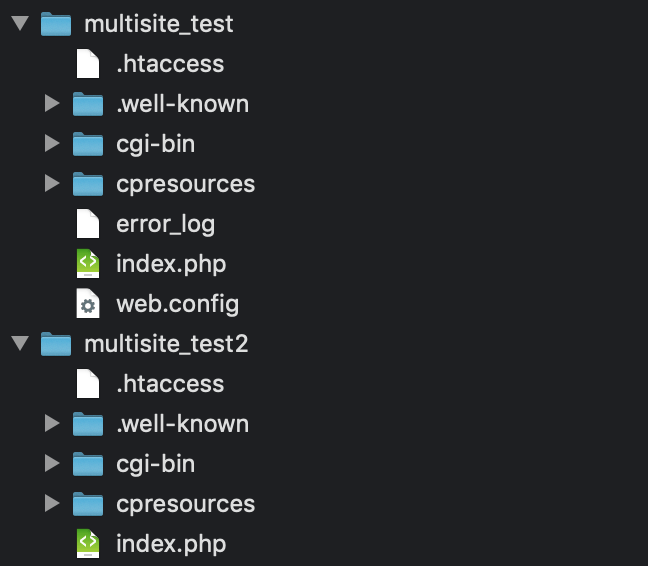 multisite_test2 には multisite_test にあった index.php, .htaccess をコピーする。