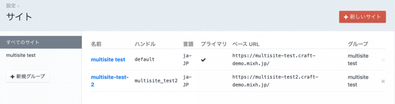 Craft CMS のサイトの設定としてはこのようになっている。