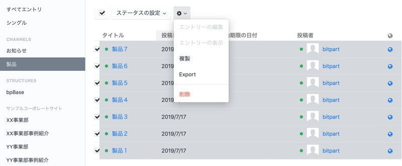 Craft CMS の 3.2 から管理画面の一覧画面からセクション、ユーザ、アセットなどのエクスポートが可能になった。