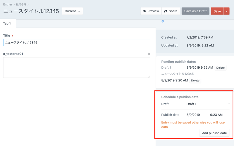 Craft CMS でドラフトの差し替え予約が可能なPublisherプラグインを試してみた #craftcms