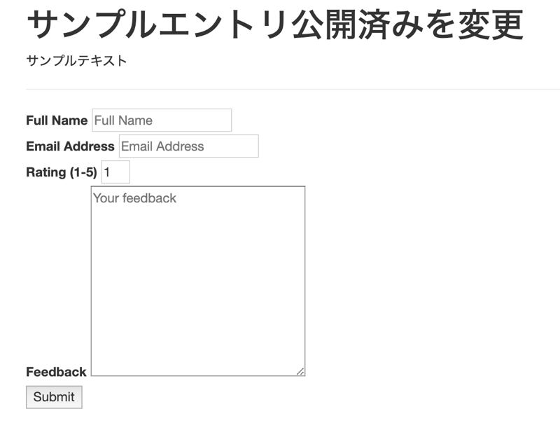 これでこんな感じでレビューを投稿できるフォームが出た。
