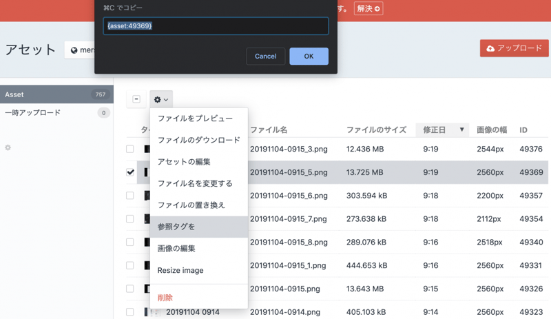 Craft CMS のアセットとかにはリファレンスタグが取れるようになっている。