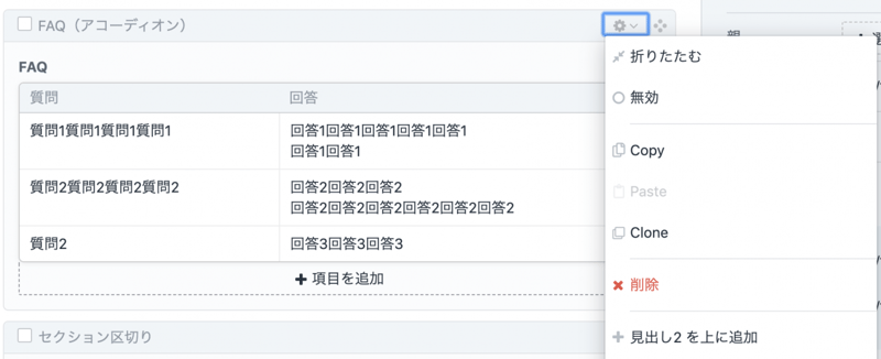 こんな感じで「Copy」「Paste」「Clone」のメニューが追加される。
