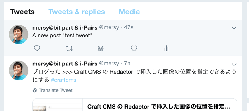 ちなみにこのブログの更新は Feed を元に ifttt を使って Twitter に投げてる。