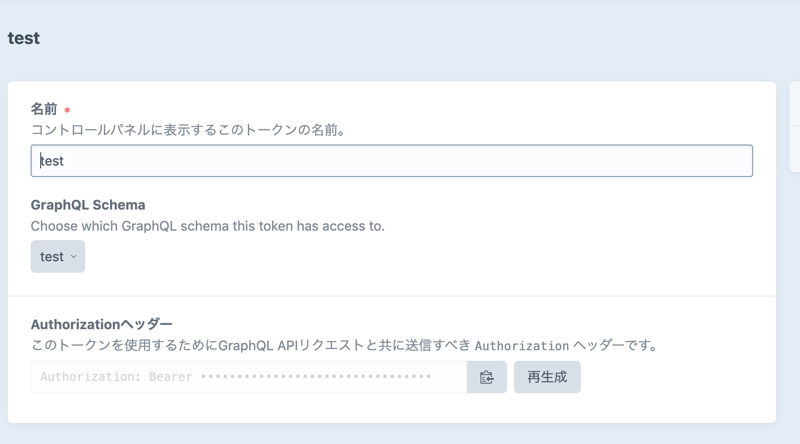 スキーマを作成したらトークンを作成して、設定する。