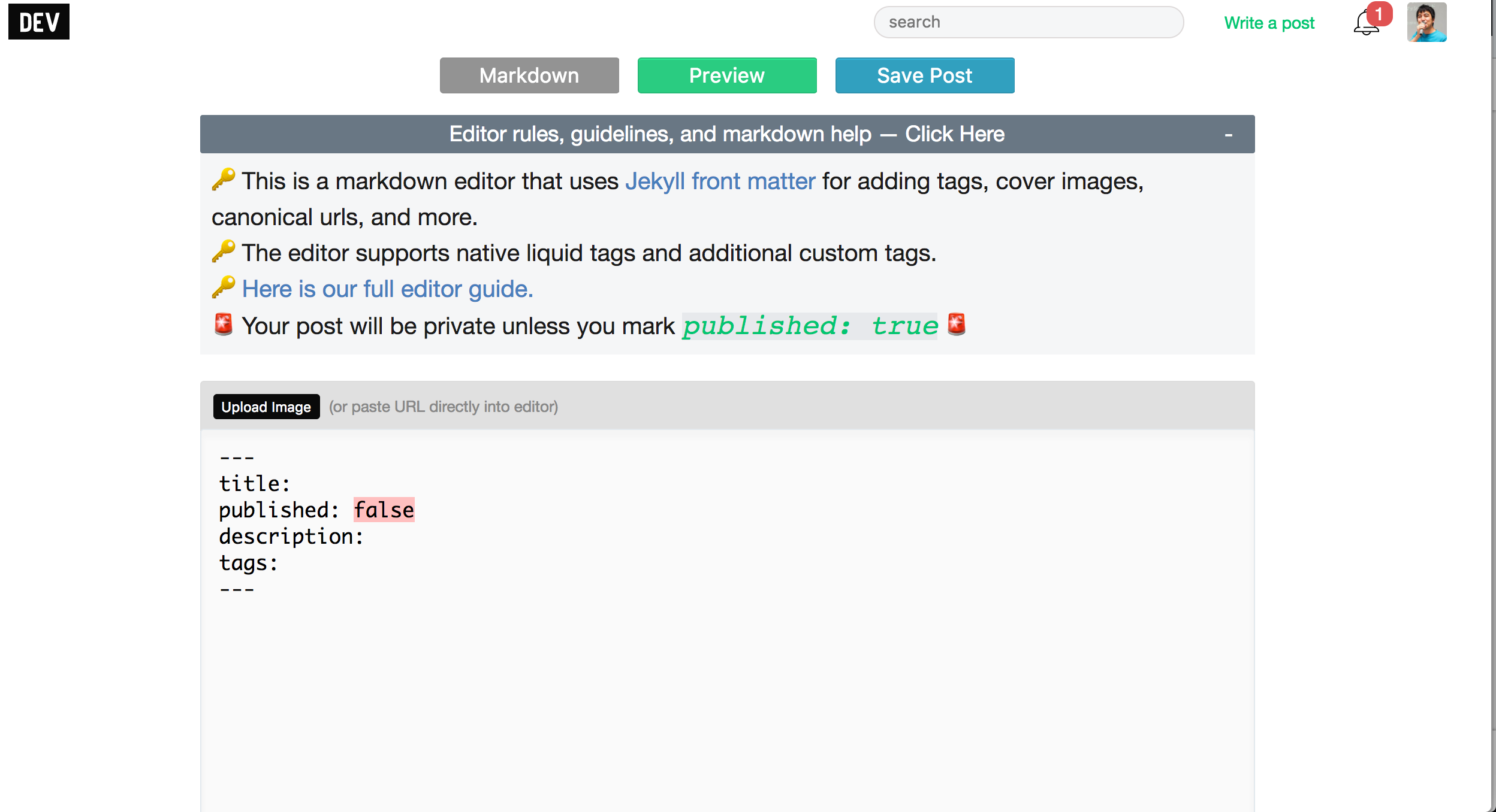 DEVの投稿画面