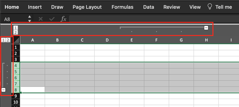 母親に聞かれて調べてみて初めて知ったのだけど、列や行をグループ化して表示されるアウトライン記号は Cmd + 8 のショートカットで表示/非表示を切り替えられる。
