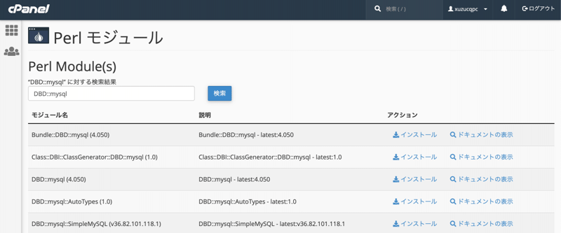 DBD::mysql は cpanel の方からインストール。
