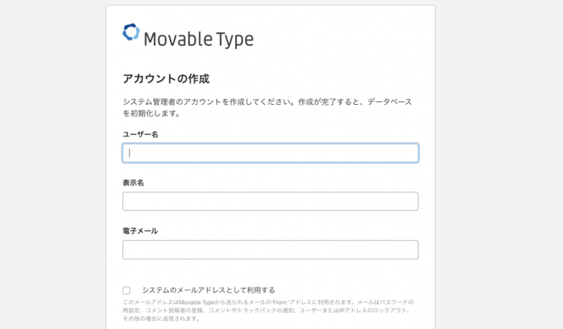 これでhttp://192.168.7.25/cgi-bin/mt/mt.cgiにアクセスして MT のインストール画面が表示された。