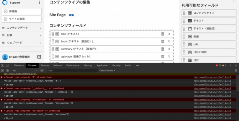 複数行テキストのフィールドをつかっていると Riot.js 周りのエラーがでる。
