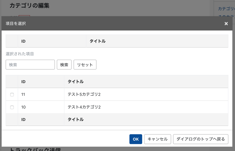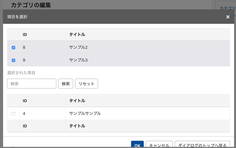 選択できるエントリも表示されているカテゴリにだけ絞っておいたほうが使いやすそうな気がしたのでそうしておいた。