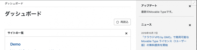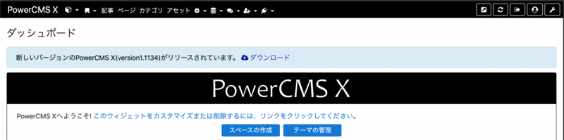 PowerCMS X のダッシュボードでは最新版のアップデートがあれば通知してもらえる