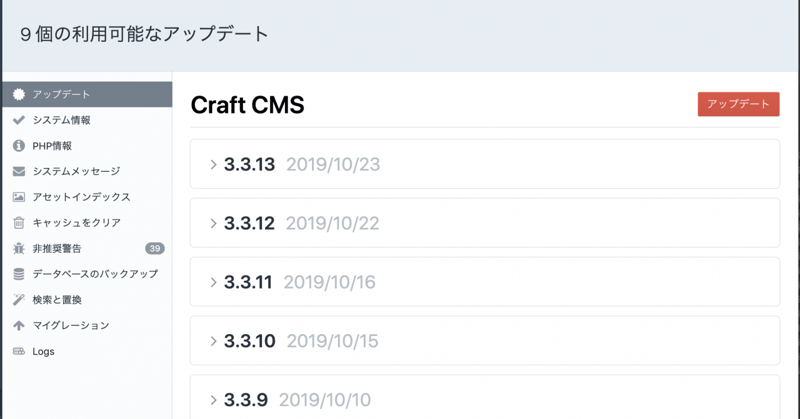 Craft CMS だとこんなかんじでアップデートが見えている。