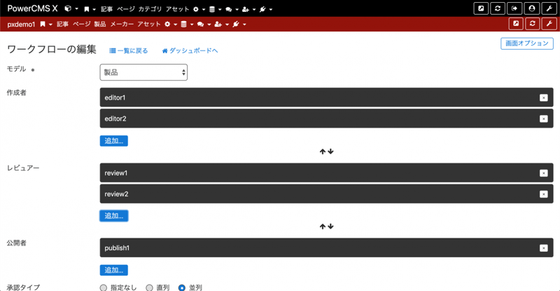 先日、PowerCMS X のワークフローをさわっていて、レビュアーとかが一人しか出ないのなんでだろうな、とかいってたんだけど。