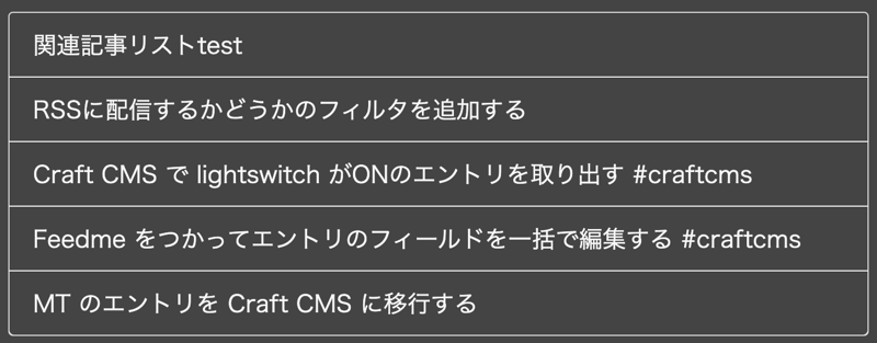 この relatedEntries から関連づけているエントリを取り出す。