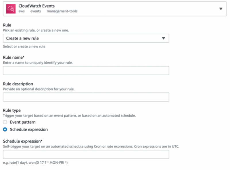 一度作った後の、 CloudWatch の編集画面ところは記事にある通りのUIだった。