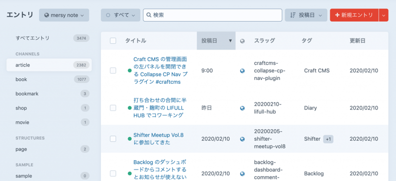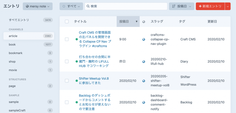 タグのフィールドも仕組みはリレーションなのでこんな感じで複数あることがわかりやすくなった。