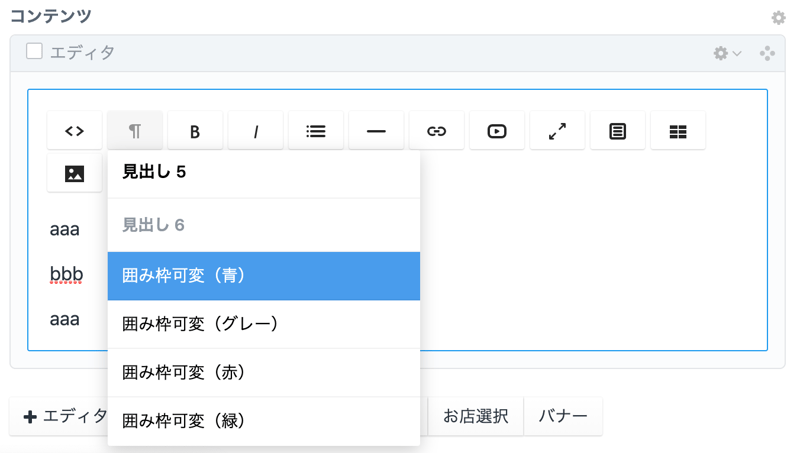 エディタで管理するか、フィールドで管理するのか悩ましい分類なのがコンテンツのスタイル、みためっぽいところなのですが。